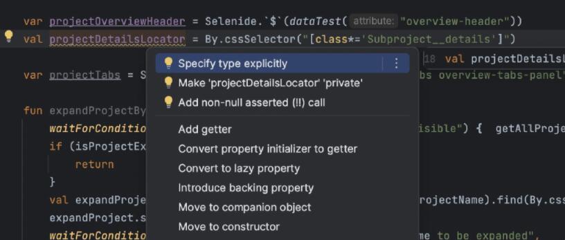 像其他 JetBrains IDE 一样,Aqua 也可以通过即时检查对代码的质量和有效性进行检查。如果发现问题,IDE 将根据上下文提出解决建议。点击灯泡图标(或按 Alt+Enter)即可调用上下文操作。充分利用可感知语言的代码补全、错误检测和实时代码修正。
