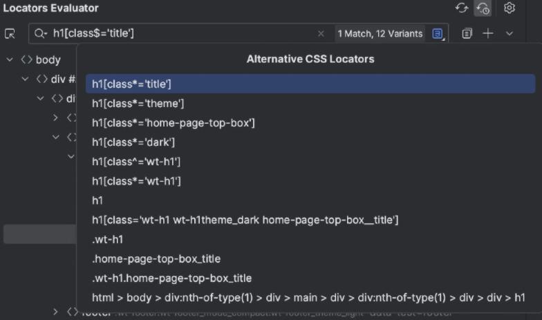 Aqua 可以为网页上所选元素生成唯一的 CSS 或 XPath 定位 器,并帮助将其添加到源代码中。如果有多个以独一无二的方式标识同一元素的定位 器,Web 检查器将提示所有可能性。