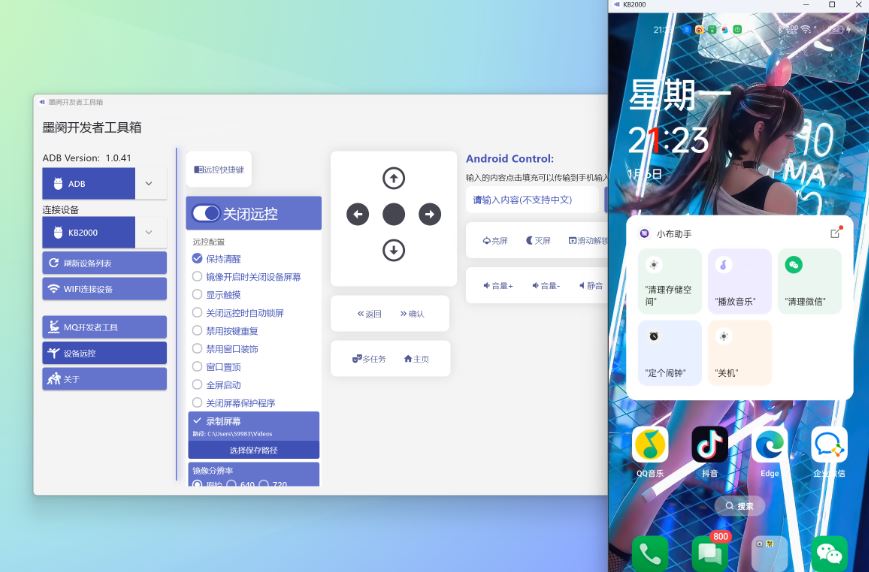 设备远控(支持有线无线实现电脑端操作设备)
