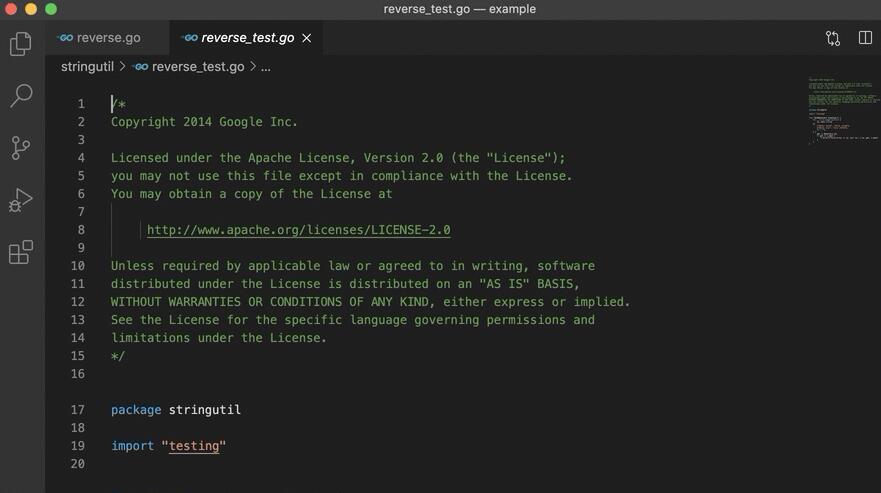 打开包含Go代码的任何目录或工作区以自动激活扩展。Go状态栏显示在窗口的左下角,并显示您的Go版本。