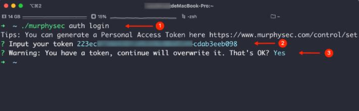 注意CLI 工具需要使用墨菲安全账户的访问令牌进行认证才能正常使用。