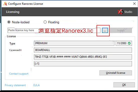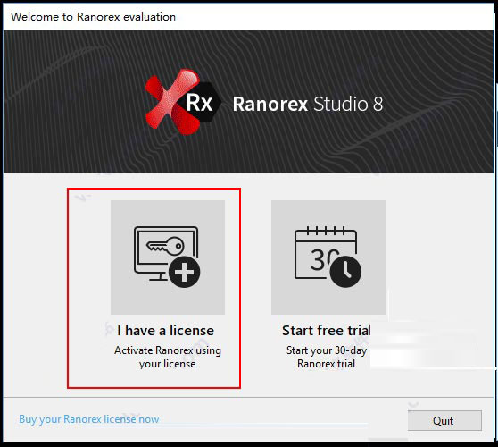 6、打开软件,选择”I have License”,在许可证配置界面中,选择”Node-Locked”,浏览指定Ranorex3.lic许可证文件即可。