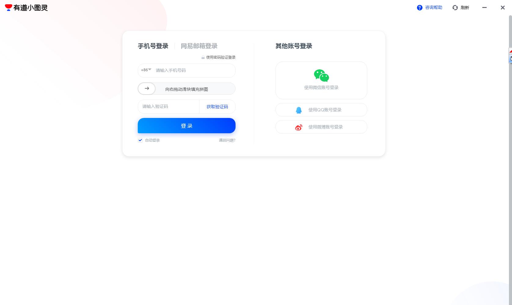1、启动有道小图灵电脑版提示登录,输入手机号获取验证码就可以登录