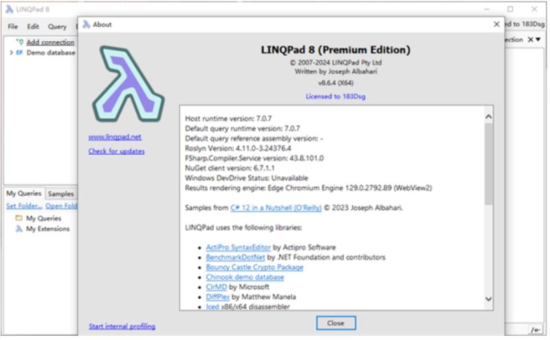 4、安装完成,可以免费使用LINQPad了。