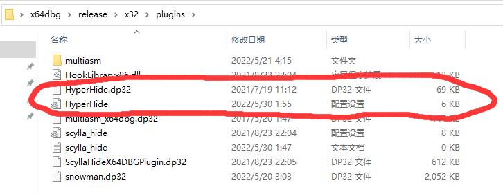 32 位:将 HyperHide.ini 和 HyperHide.dp32 复制到 2\plugins\ 目录。