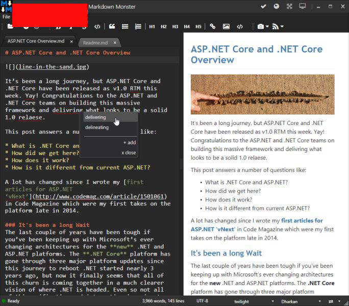 Markdown Monster的预览窗格可让您查看降价文本在呈现为HTML时的样子。