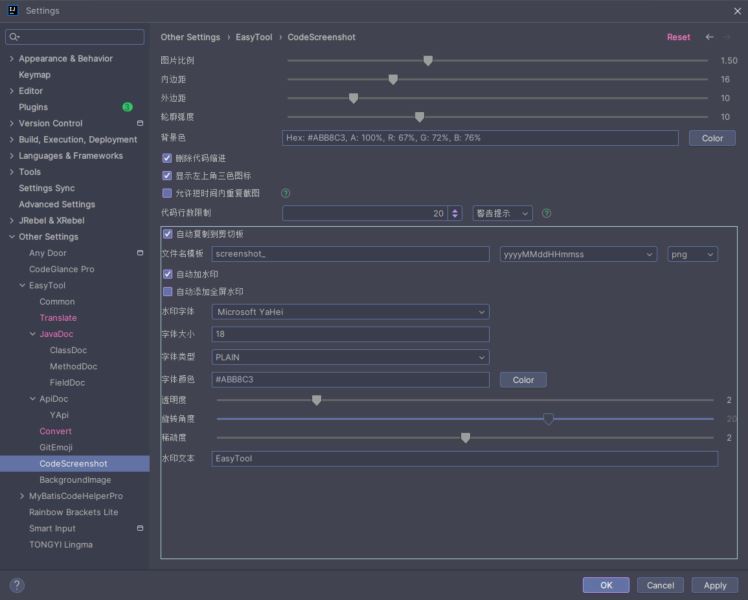 EasyTool是一个支持多系统平台的IDE插件工具集,具有日常编程过程中常用的功能特性,包括但不限于中英字符互转、