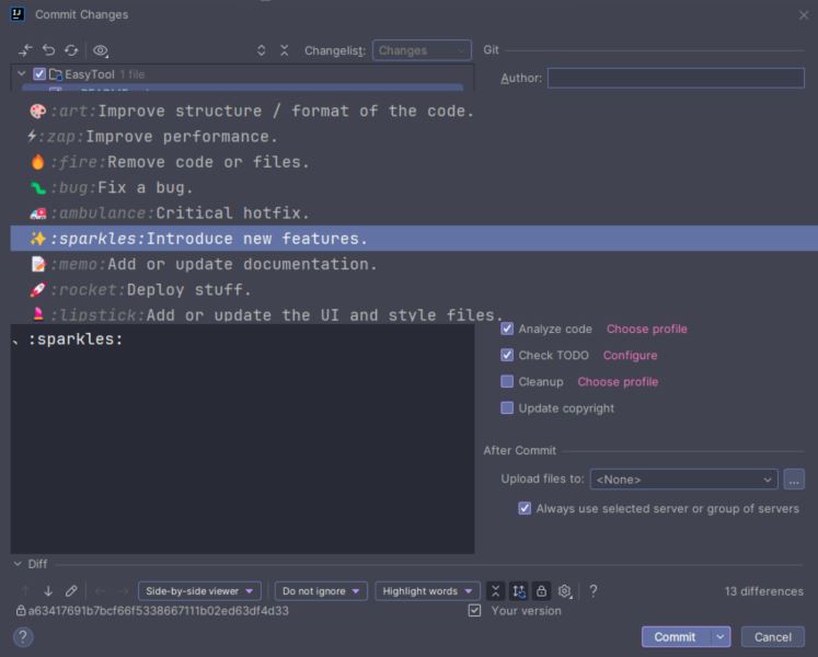 支持 Git Commit Message 消息文本输入 英文冒号+Emoji英文字符 自动提示(支持Markdown、Java、Txt等文件)