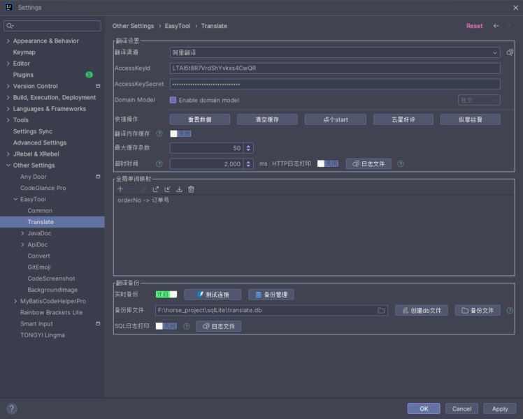 标识表示厂商免费权益较高),可按需配置Other Settings->EasyTool->Translate,
