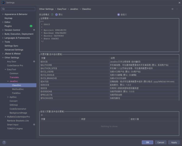 支持自定义JavaDoc生成模板及Groovy脚本值设置
