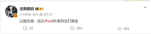 根据博主爆料,华为Pura 90系列在外观上延续了上一代的经典设计,继续采用辨识度极高的三角形相机模组。此次设计的核心亮点在于回归了渐变配色,为用户带来更具层次感的视觉体验。