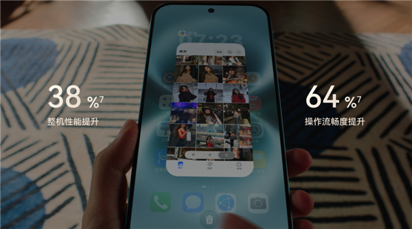 通过软硬芯云深度整合,从底层架构实现全链路性能优化,让整机性能提升38%,操作流畅度提升64%。