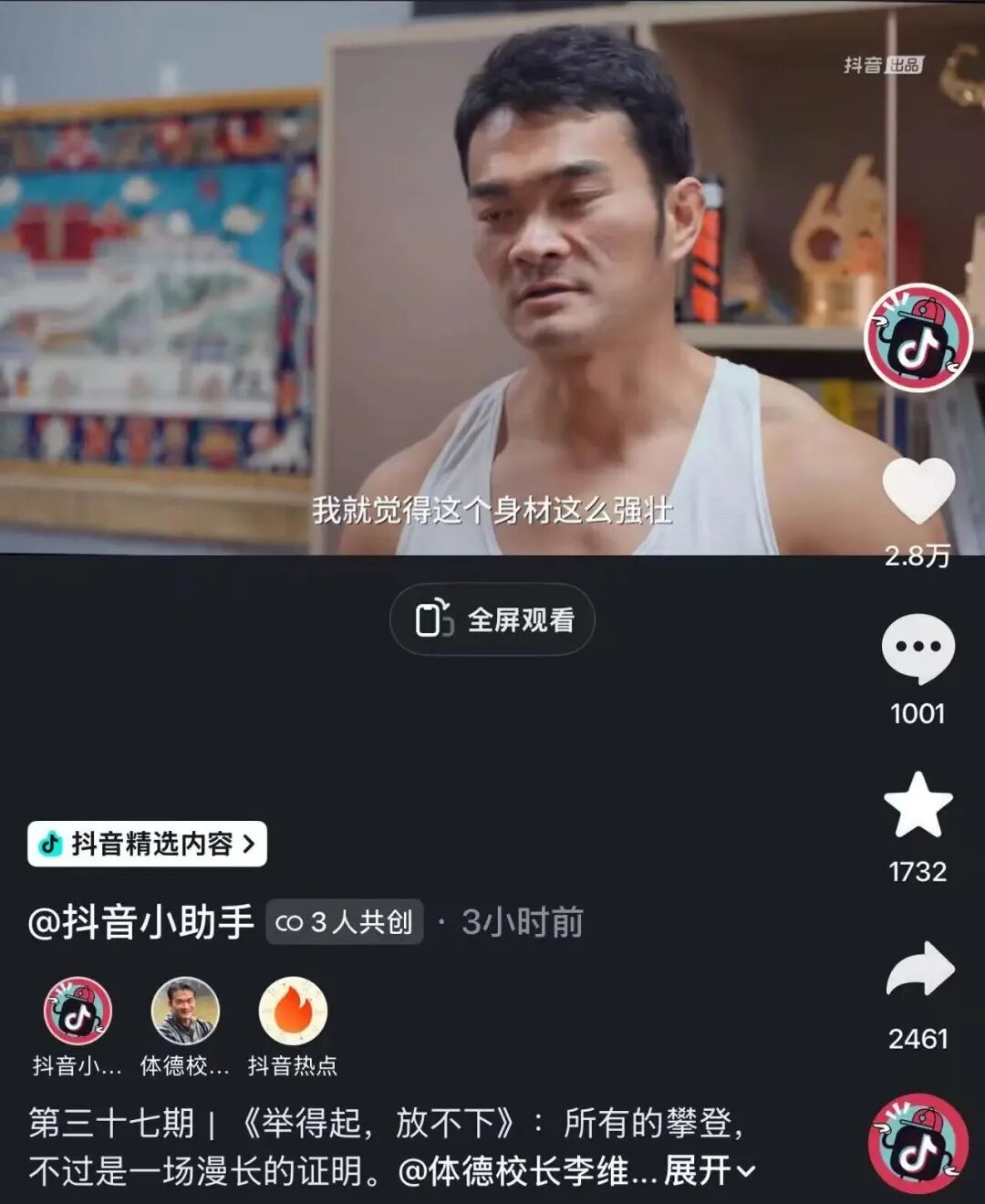 这个肌肉硬汉当场落泪。