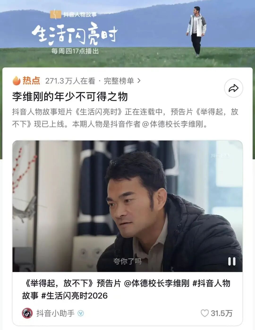 最近《生活闪亮时 2026》把他的故事摊开,无数人破防: