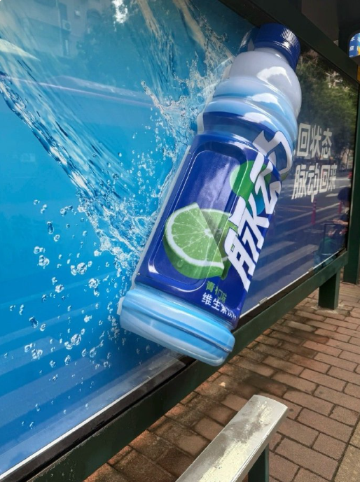 电脑知识网6月24日消息,近日,广东、北京、浙江、山东等多地网友在社交平台发帖称,功能饮料品牌脉动在公交车站投放了3D立体户外广告牌。