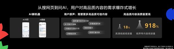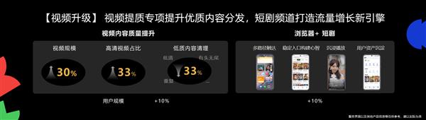 视频生态实施“质”“量”双引擎战略。一方面通过AI技术过滤低质内容,重构纯净高质的内容生态,推动高清视频占比提升33%,整体规模增长30%;另一方面引入精品短剧,凭借高能剧情、沉浸式体验与FA卡片便捷入口撬动流量新增量,目前已免费开放。