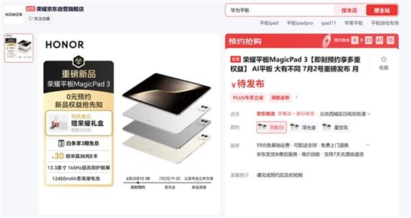 作为2025最佳AI平板,荣耀平板新品MagicPad 3凭借旗舰级硬件配置,结合AI软硬件使能,打造大屏、AI、生态、续航等多方面领先体验,将于7月2日19:00正式发布。目前,荣耀平板MagicPad 3已在荣耀商城、天猫以及京东旗舰店等渠道开启预约,前300名购机顾客可获赠限量荣耀礼盒。