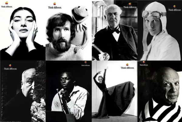 黑白画面里,爱因斯坦、马丁·路德·金、毕加索、甘地。。。一个个 “ 疯狂 ” 的人走过,旁白响起:“ 只有那些疯狂到认为自己能改变世界的人,才能真正改变世界 ”。