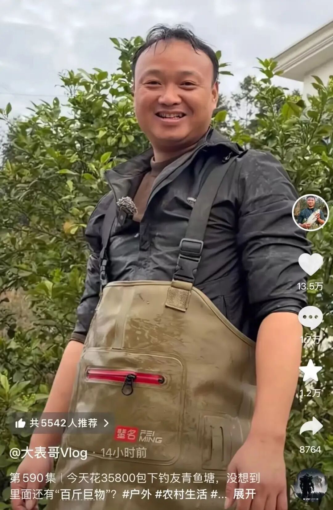4 月 3 日,抖音3000 万粉丝大网红大表哥,跑到湖南洪江包下一个号称20 年没干过的鱼塘,一口价35800 元。