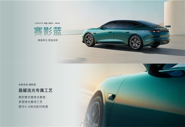 新增车色“赛影蓝”,凝练北欧湖海极光灵感和晶耀流光工艺,高反射铝粉3-5倍闪度水晶珠光,呈现更通透、更凌厉的视觉表达,内饰新增“暗影红”,诠释运动基因与轻奢质感。
