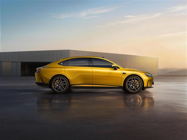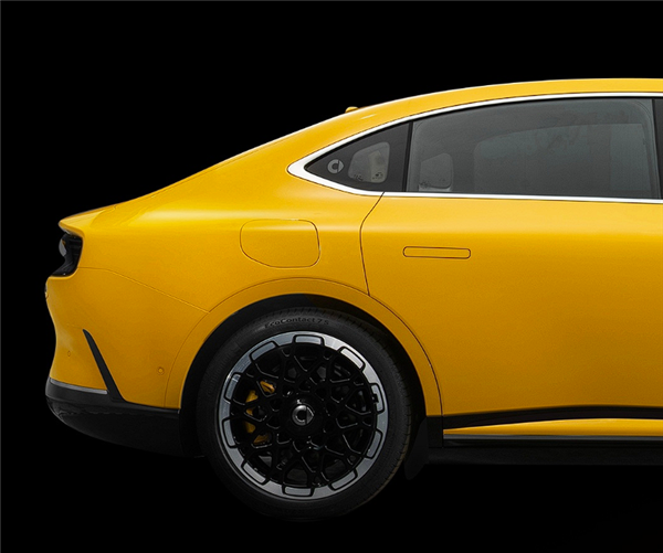车辆尾部同样为贯穿式尾灯并融合了内凹的造型,车尾翼子板塑造出宽体的视觉效果,配合后保险杠的双拼配色,运动属性拉满,而电动尾翼打开后配合明黄色车漆,恍惚间有种小米SU7的错觉。