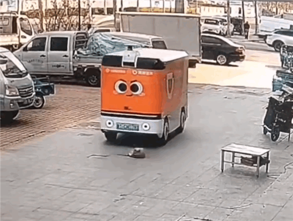 无人车未识别到小狗,径直从其身上碾压过去,小狗被压过后疼的原地打转嚎叫,随后倒地不起。