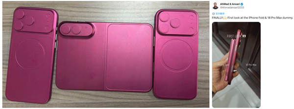 本周Sonny Dickson、AhMad Ansari等多位科技爆料者均发布了一系列他们声称为iPhone Fold机模(供配件厂商生产手机壳等组件的模型)的图片和视频。