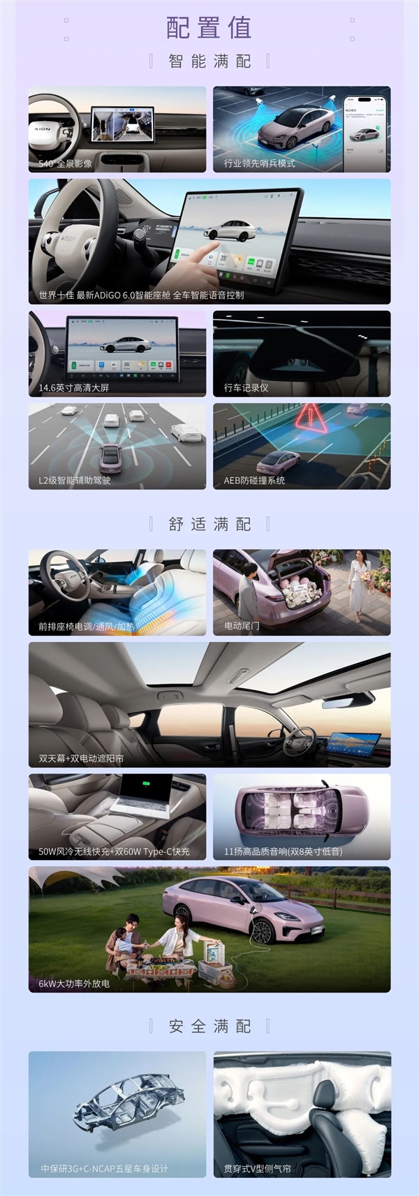 舒适性配置也很齐全,前排座椅支持电动调节、通风和加热,还有电动尾门、双天幕带电动遮阳帘、50W无线快充、11扬声器音响以及6kW外放电功能,家用、露营都能满足。