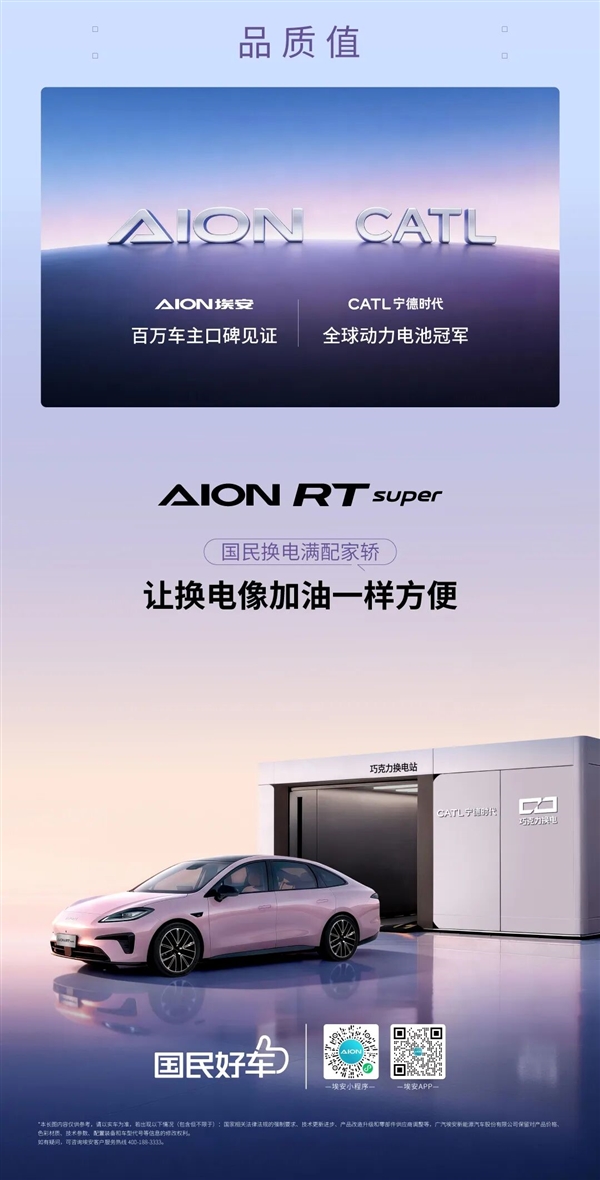 包小可4月8日消息,广汽埃安正式推出AION RT super,购车价仅8.88万元,还支持99秒极速换电,补能速度比加油还要快3倍。