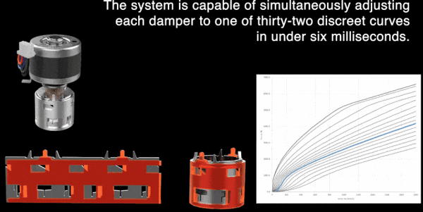 这些方案放在民用车上没啥问题,但放在赛车上就会暴露出可调参数不够多(即使是双阀CDC也只有4档软硬可调)、阻尼控制不够精准( MRC 内部磁场分布不均匀 )的问题。