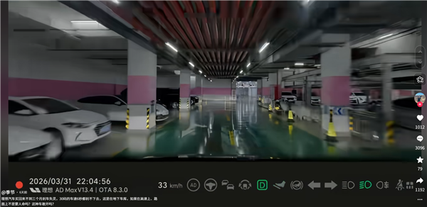 从行车记录仪拍摄的画面看,当天该车主驾驶自己的爱车在地库里行驶,速度不慢,一度达到了33km/h,最终车辆和墙壁发生碰撞,撞击时的车速大约为10km/h。