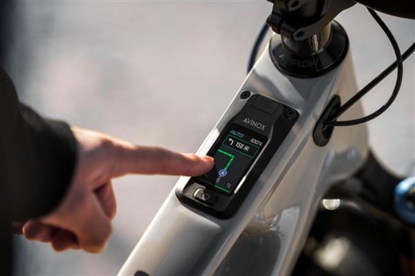 Amflow车架上直接集成了一块Avinox全新的2英寸全彩OLED触摸中控屏,用户可以在屏幕上对车辆模式、功能进行直接操控,实时查看骑行数据、预估续航里程和选择骑行模式等,骑行状态随时一目了然。