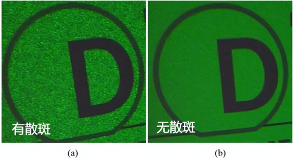 纯三色激光比较严重的问题是散斑,这是激光高度相干性导致的光学现象。当激光照射到粗糙的屏幕表面时,会因干涉效应形成随机分布的亮斑和暗斑,就像画面上覆盖了一层细密的“雪花”。这种视觉噪声不仅会降低画面清晰度,长时间观看还容易引发眼睛酸胀、头晕等不适感,尤其对近视、散光等视力敏感人群更为明显。如果要消除散斑需引入动态振动幕布或相位调制器,成本增加40%,所以大部分的投影仪厂商也不能完全做到将散斑消除。