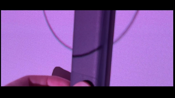 色边,则是三色激光合光不精准的产物。传统三色激光投影仪通过红、绿、蓝三色激光合成白光,若光路校准存在微小偏差,三色光斑便无法完全重合,导致图像边缘出现彩色条纹,俗称“彩虹纹”,特别像抖音的logo。这种现象在显示高对比度画面时尤为突出,不仅影响观感,还会加剧视觉疲劳。