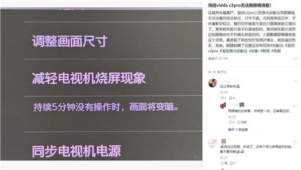 包括很多纯三色激光投影仪的电商详情页下,也有不少用户购买后发现纯三色激光加重了眼部疲劳的问题,长时间下来可能会对视力造成一定的危害。