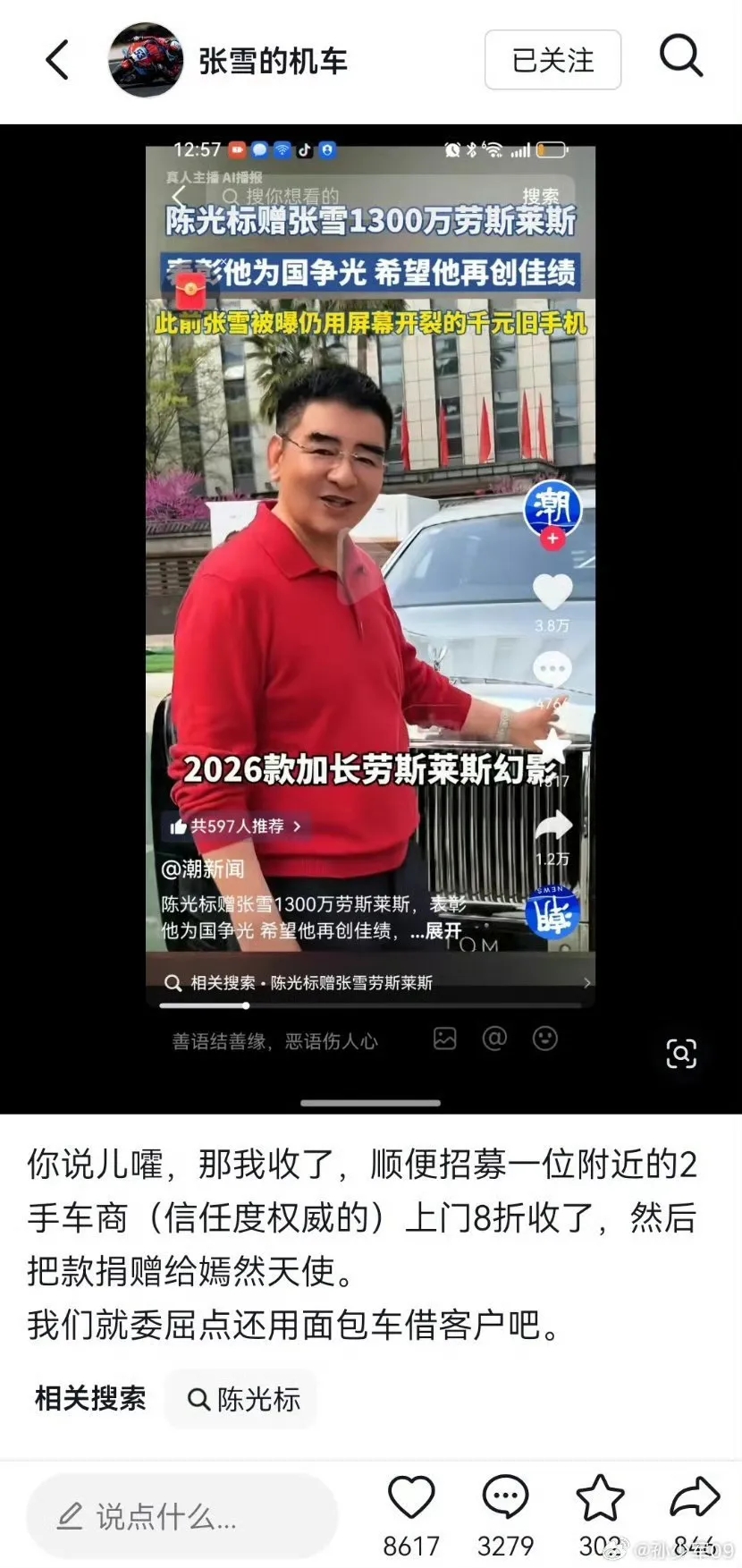 陈光标送 1300 万劳斯莱斯,他转手就要卖掉捐掉。