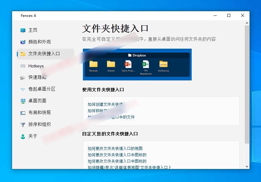 Fences即桌面栅栏,是指桌面上有阴影的图标分组,它的目的是帮助您非常有条理地管理您的桌面,围栏通过自动将快捷方式和图标放入桌面上可调整大小的阴影区域(称为围栏)来帮助您组织PC。Windows的许多定制功能使它成为世界上最受欢迎的Windows桌面增强功能。
