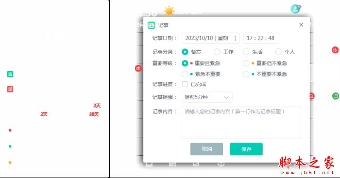 记事便签:轻松记事管理,让你更有效的管理事情,并结合日历展现记事,方便查看和提醒;