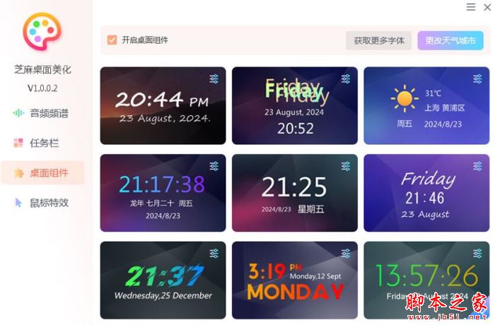 电脑主题美化、任务栏透明美化、鼠标光标美化、声音波形图、音频频谱等功能。结合动态壁纸、高清壁纸,再加上在桌面添加日期、时钟、农历、天气等功能,打造一个非常有特色的桌面。芝麻桌面美化软件是一款功能强大的桌面美化工具,