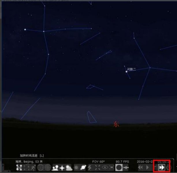“跳至当前时间”,返回到现在的时间所显示的星空状态。