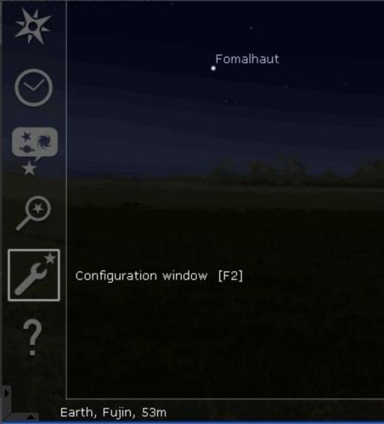 首先,打开Stellarium虚拟天文馆,将鼠标移动到屏幕左边往下的位置或按F2键,进入“设定”选项。