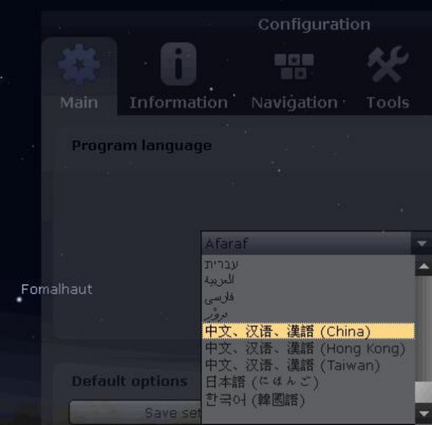 点“保存设置”,保存的是观星的设置,例如:所在地、观察方向、星座状态选择、窗口状态等,不只是保存语言设置。