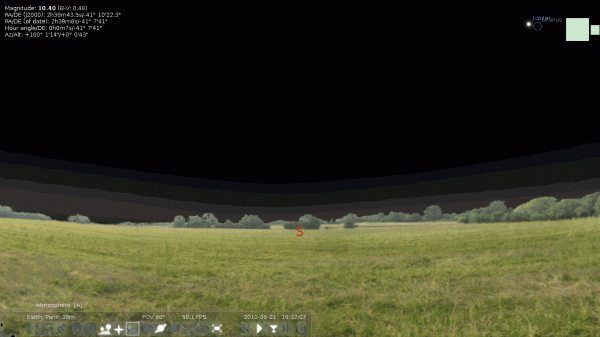 Stellarium是一个免费开源的桌面虚拟天文馆软件,可在Linux/Unix, Windows and MacOSX平台上运行.它使用OpenGL对星空进行实时渲染,在你的电脑桌面上生成一片虚拟3D天空,因此星空效果和你用肉眼,望远镜或者天文望远镜观察到的星空别无二致.Stellarium也有白天和黑夜变化,你可以通过调整日期或时间,来看到不同季节的天空.