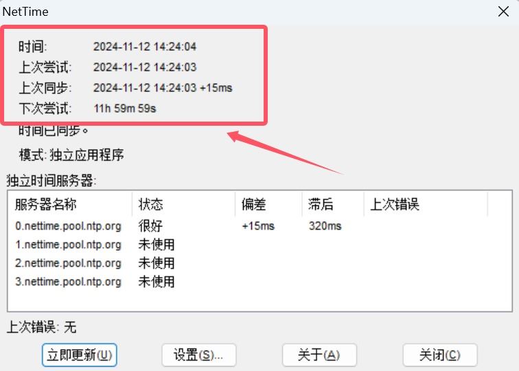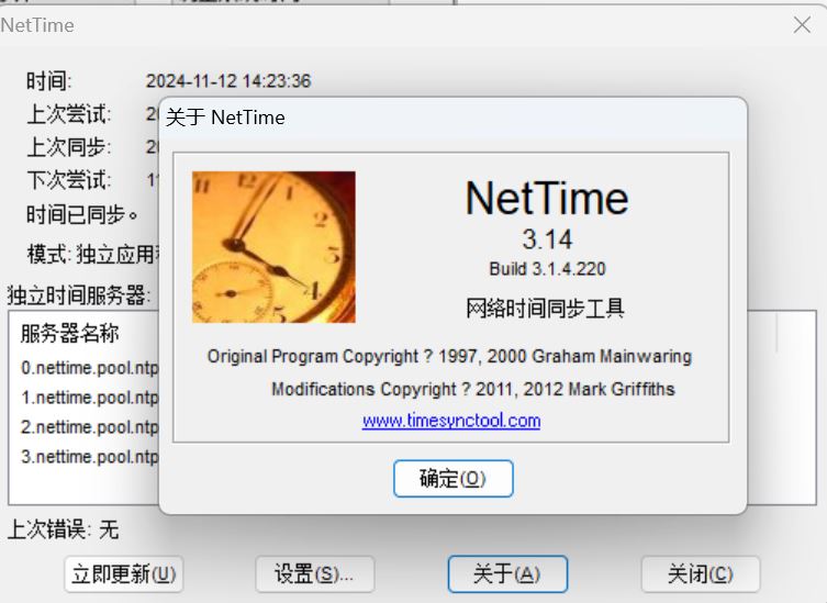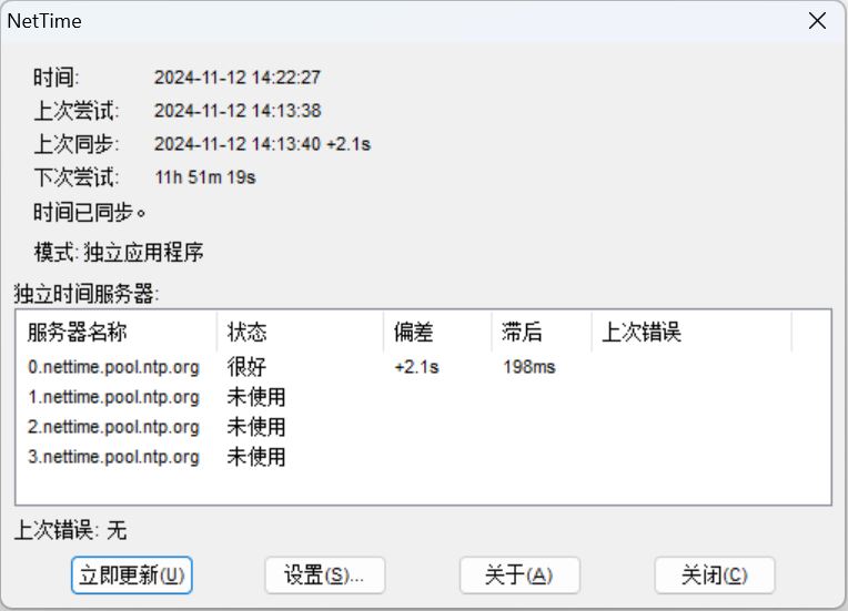 NetTime是一款非常好用的电脑端时间同步系统软件,能够让你的多台电脑时间进行同步,对于集体时间观念很强的办公团体是非常有用的。软件基于先进的时间协议,并且支持多种TCP/IP网络时间协议,包括且不局限于Time、UnixTime、NTP/SNTP等等,并且兼容性强,支持多种不同系统的电脑进行时间同步,基本可以满足所有用户的使用需求。软件可以让用户自己选择同步时间的模式,包括同步时间、同步范围等等,并且可以自己选择网络时间协议和自动识别时区,让你的电脑实现与网络时间的完美同步,一分一毫都不差。