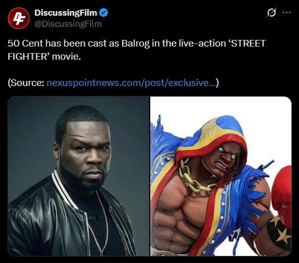 另外,50美分将出演游戏改编电影《街霸》中的拳王(Balrog),目前正在进行体能与技法训练,准备亲自完成片中的打斗与特技场面。