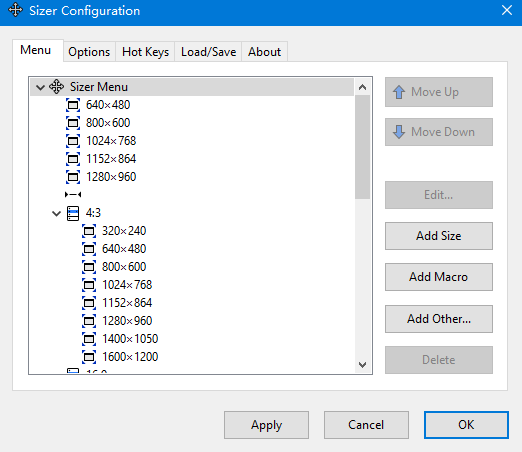 Sizer Configuration可以轻松的设置桌面桌面窗口大小,完全自定义,想调什么尺寸就调什么尺寸,使您可以按照您的意愿布局多个应用程序,包括带出主调整大小菜单,可以分配给一个热键,可以在任何时候使用,而且软件小巧稳定,非常方便,喜欢的小伙伴们可以试试。
