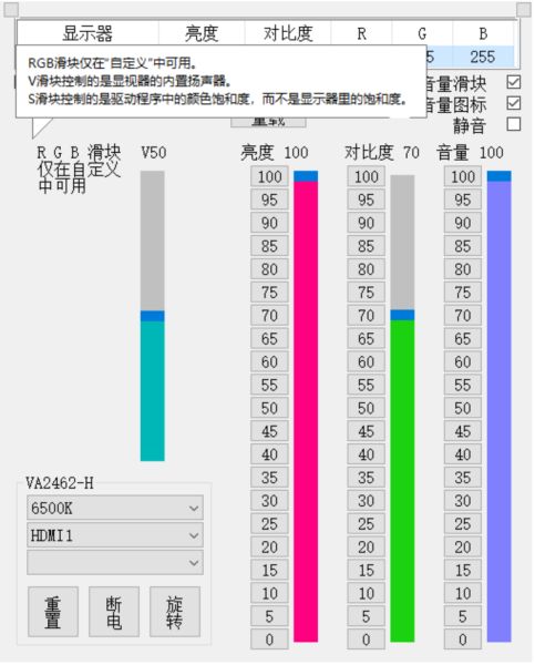 支持调节色温 甚至能按照 RGBV 的值来调整