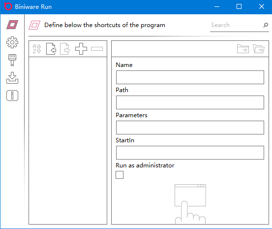 Biniware Run(窗口快捷打开)是一款能够帮助用户简化桌面,并且支持快速打开一些软件和网站、程序的工具,用户能够将经常使用的工具拖入软件中,快速打开。