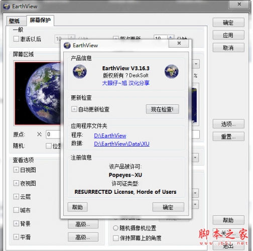 EarthView 是一个相当有趣的桌面画面及保护程序,它可以在桌面上看到鸟瞰地球的高品质动态,包括日光视图区域及我们可以从画面中看到的画面的黑度解析度。画面,而显示模式可以地图(地图)显示参数(地球)的或方式选项。包括地理疆域国界信息、地球分布……等,可以由用户自行修改其他参数及设置,达到最佳的观看效果。