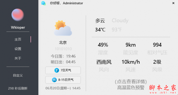 Wkioper是一款简约的天气软件,使用易语言ExUI++进行编译,能够帮助用户快速地获取全国各地的天气情况,为之后的出行计划提供了依据。软件第一次启动可能会失败,请等到自动释放 ExuiKrnln.dl 到同级目录下后再重试启动即可。